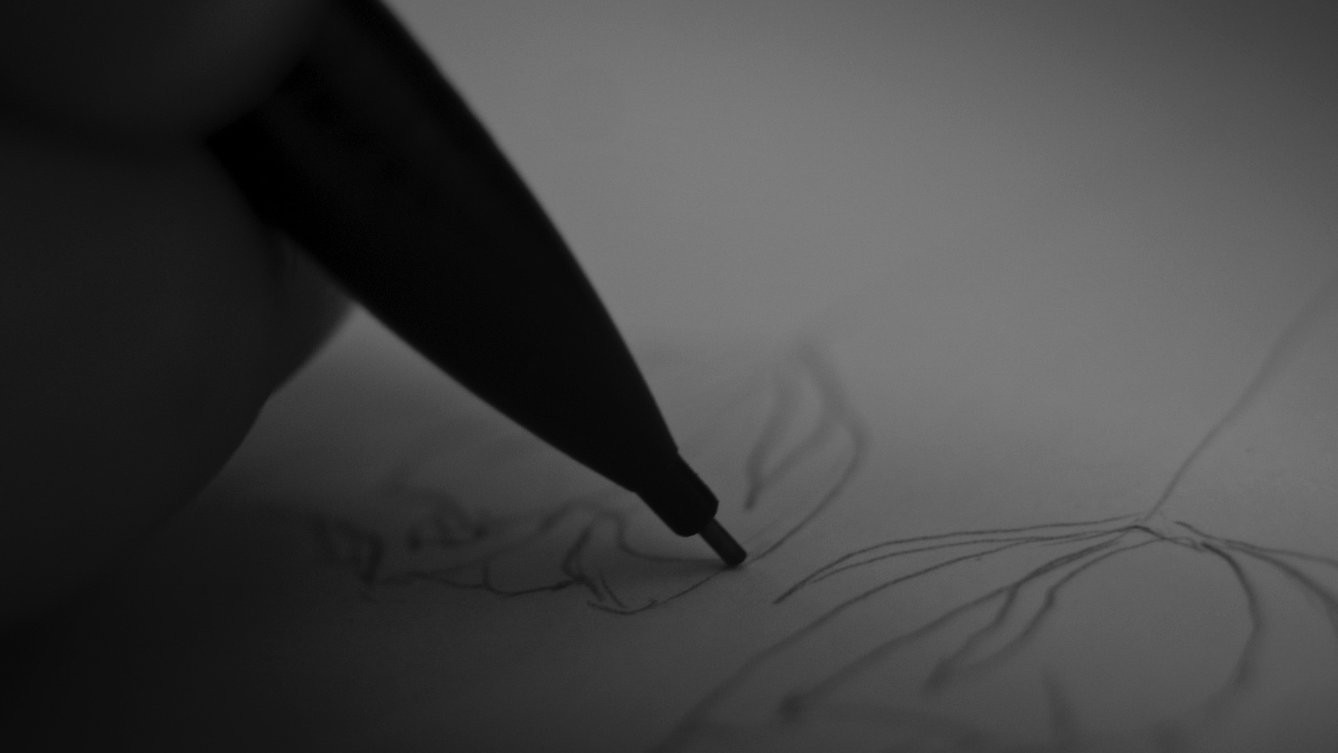 Cinq minutes pour retracer la création d’un tatouage, un dos entier, celui d’Élise. C’est la première fois que Flinart travaille sur un format de cette ampleur, plus proche du tableau que du tatouage. Il nous accueille pendant deux jours dans un grand appartement où plantes, tapis et miroirs se superposent. L’intimité du lieu est suffisante pour laisser pleinement la place au tatoueur et à la tatouée. Une communication silencieuse avec Emma, réalisatrice, permet l’émergence de scènes sincères et douces. Depuis la table à dessin, nous avons la chance de suivre chaque étape de la création du tatouage, mais il était important pour nous de conclure par une séquence d’exposition au monde, une errance dans un extérieur vaste et intemporel. Les calanques de Marseille étaient le décor idéal pour faire ressentir le voyage auquel ce tatouage était destiné. Le noir et blanc s’est imposé comme une évidence pour ce projet. D’abord parce que Flinart a toujours pris plaisir à photographier ses tatouages ainsi, et qu’il était important de s’inscrire dans son langage visuel. Ensuite, la brillance et la densité qui en résulte était la meilleure manière de rendre le trait fin, minutieux et profondément noir du tatouage, Flinart utilise très peu la couleur. Enfin, nous voulions un film où les émotions et les sensibilités soient perceptibles par l’image. Le noir et blanc a été pour nous un moyen d’expression et de sélection, afin d’offrir une représentation du réel équilibrée et de laisser la place restante à l’émotion et au caractère de nos interlocuteur·ice·s.