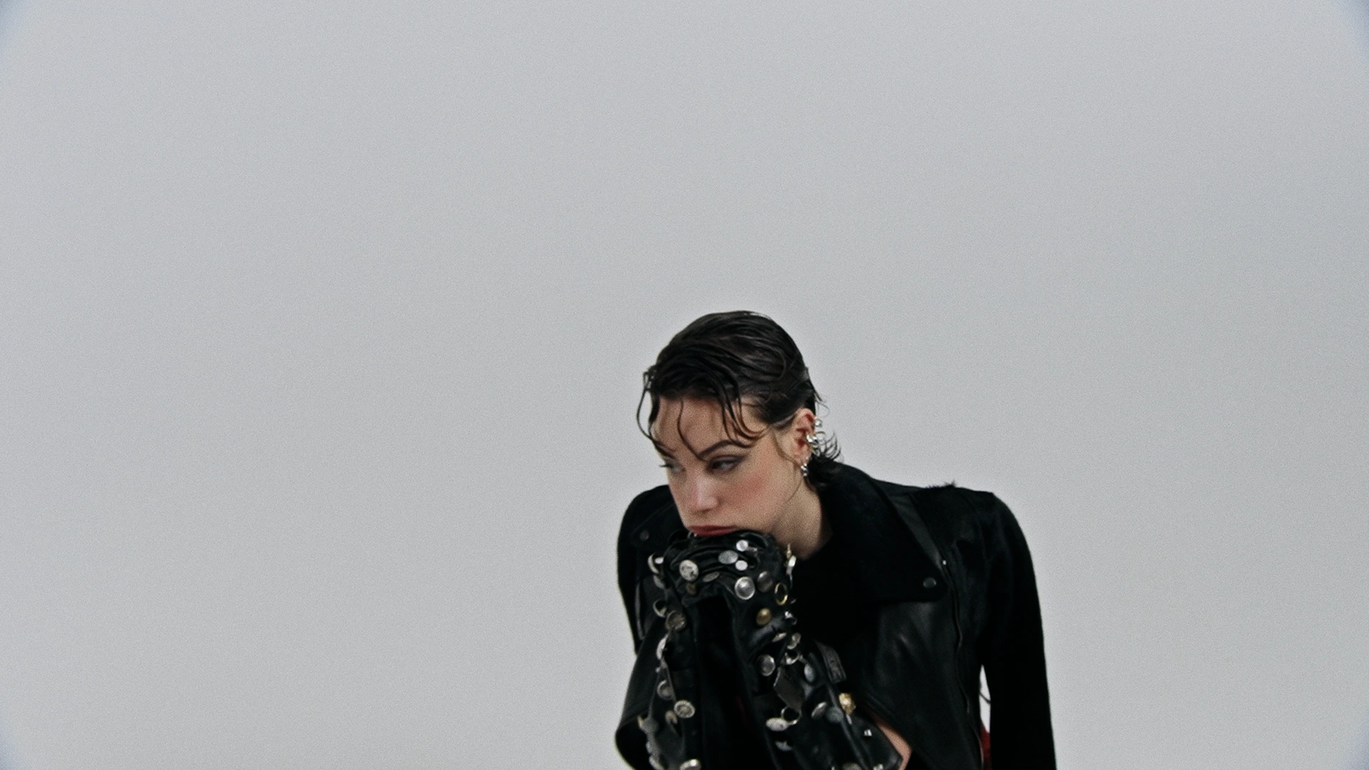 Pour Dissimule d’Adé, réalisé par Lara Chochon, on immerge totalement le spectateur dans un shooting mode oppressant à travers un point de vue rappelant le found-footage : une caméra BTS sensation de caméscope devient le fil narratif du film. Ce regard brut capte peu à peu la montée en pression d’Adé derrière son assurance de façade, ses gestes nerveux, son regard fuyant et une équipe qui se rapproche jusqu’à créer une sensation d’étouffement. La mise en scène évolue progressivement vers une forme absurde de chaos, pour aboutir à un moment de rupture où Adé brise la distance, s’empare de la caméra et reprend le contrôle de son image.