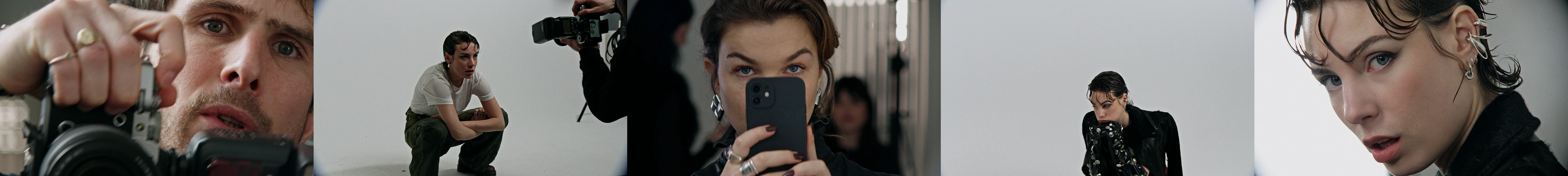 Pour Dissimule d’Adé, réalisé par Lara Chochon, on immerge totalement le spectateur dans un shooting mode oppressant à travers un point de vue rappelant le found-footage : une caméra BTS sensation de caméscope devient le fil narratif du film. Ce regard brut capte peu à peu la montée en pression d’Adé derrière son assurance de façade, ses gestes nerveux, son regard fuyant et une équipe qui se rapproche jusqu’à créer une sensation d’étouffement. La mise en scène évolue progressivement vers une forme absurde de chaos, pour aboutir à un moment de rupture où Adé brise la distance, s’empare de la caméra et reprend le contrôle de son image.