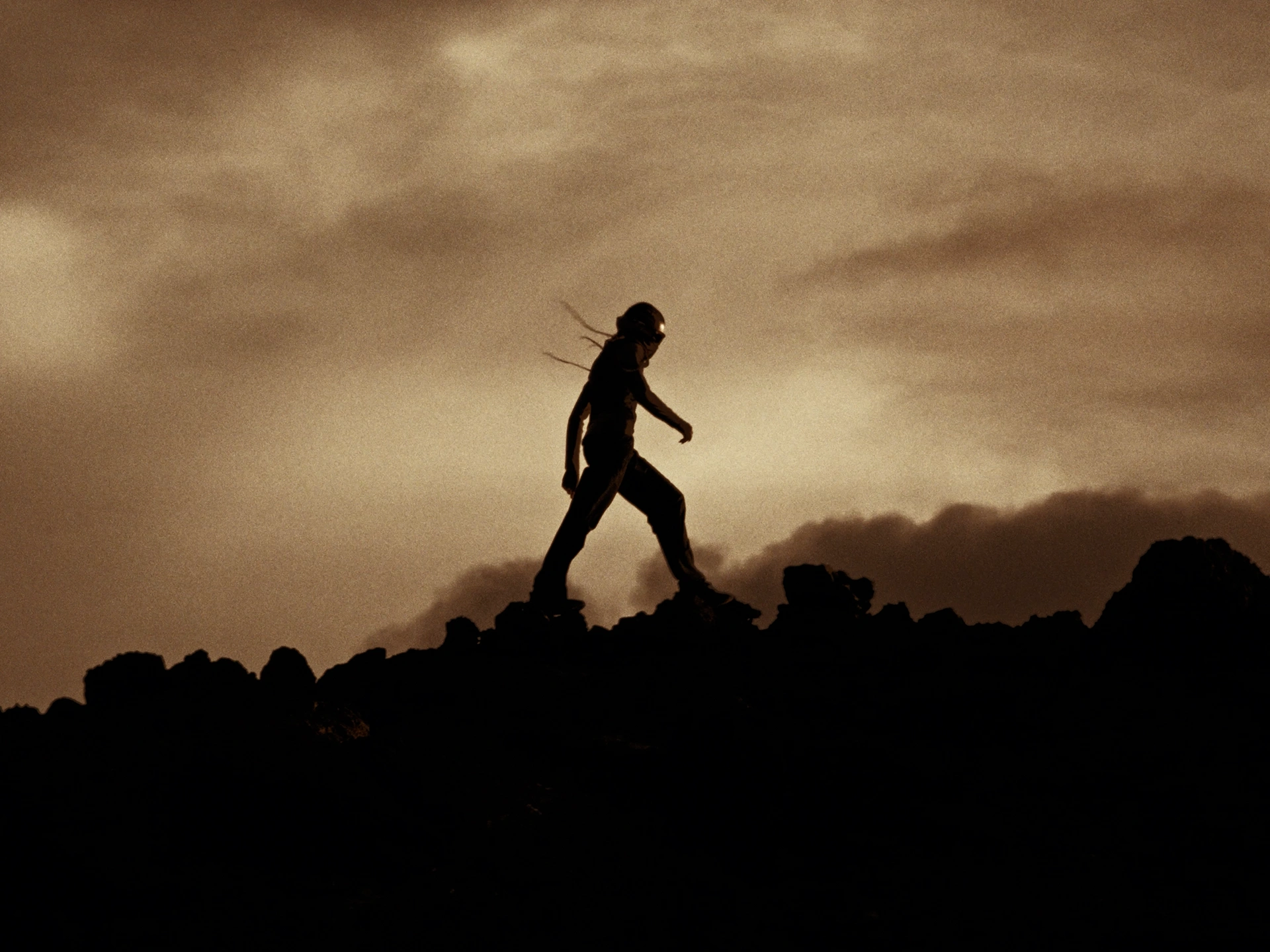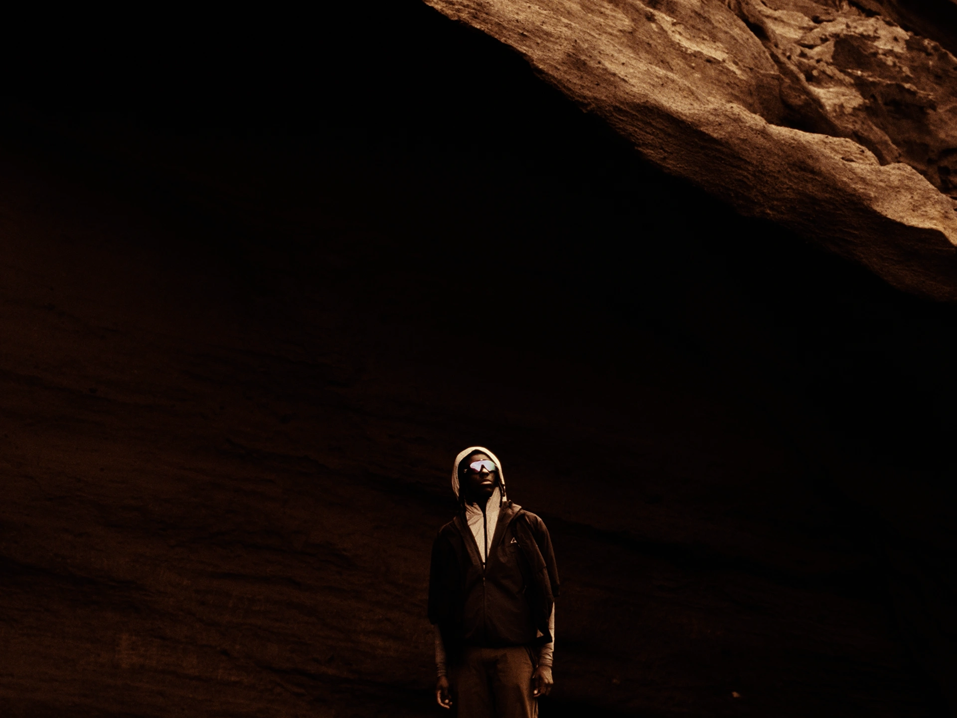 Pour Oakley tourné à Lanzarote, réalisé par Léo Joubert, on cherche à retrouver l’esthétique des publicités sport des années 90-2000 dans un monochrome orangé, terreux et presque minéral. Plutôt que de filmer les paysages spectaculaires comme une évidence, on fuit les cartes postales pour trouver des axes où ciel et terre se confondent. L’intention est de créer un désert abstrait, un espace sans repère précis, pleinement au service de l’histoire.
