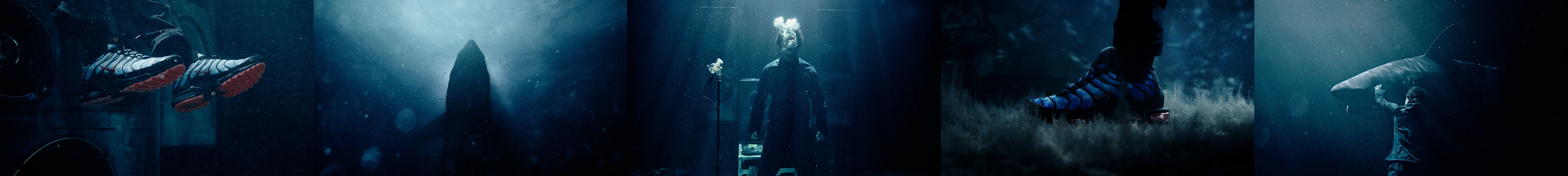 Pour Sharks – Nike TN, réalisé par Nolann Blettner, nous tournons sous l'eau. Jola Green passera une journée sous l’eau entourée d’un grand mur d’enceinte. C’est par un travail extra de Nolann en 3D que nos fonds marins vont être peuplés de requins. Le cliché menaçant du requin est rapidement dompté par l’énergie décuplée de Jola Green, la chaussure le place en maître des fonds marins. Le tournage se fait en une journée dans un studio piscine à Paris, avec Marion Botte, opératrice sous-marine, dont la précision et la rapidité nous permettent de pousser un maximum la mise en scène avec Jola et les requins pour l’instant invisibles. Par chance il est très à l’aise dans l’eau.