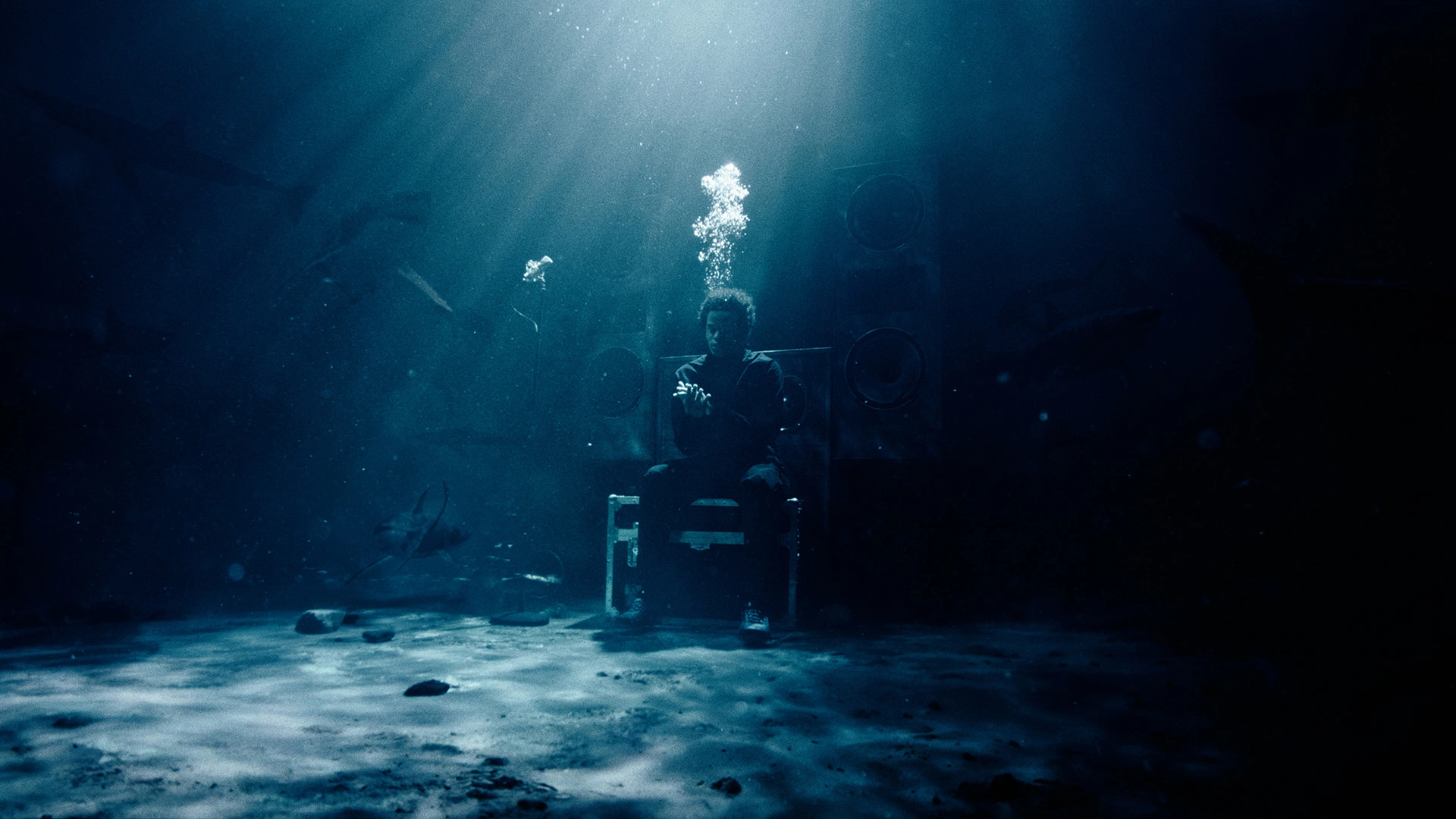 La construction de la lumière est pensée en amont pour faciliter l’intégration des extensions de décors et des requins en 3D. Les sources principales — ARRI M90 et Source Four LED — sculptent un volume lisible et directionnel, proche d’une ambiance de fond marin, afin de conserver une cohérence organique entre prises de vue réelles et VFX, au service d’un univers aquatique à la fois immersif et crédible.