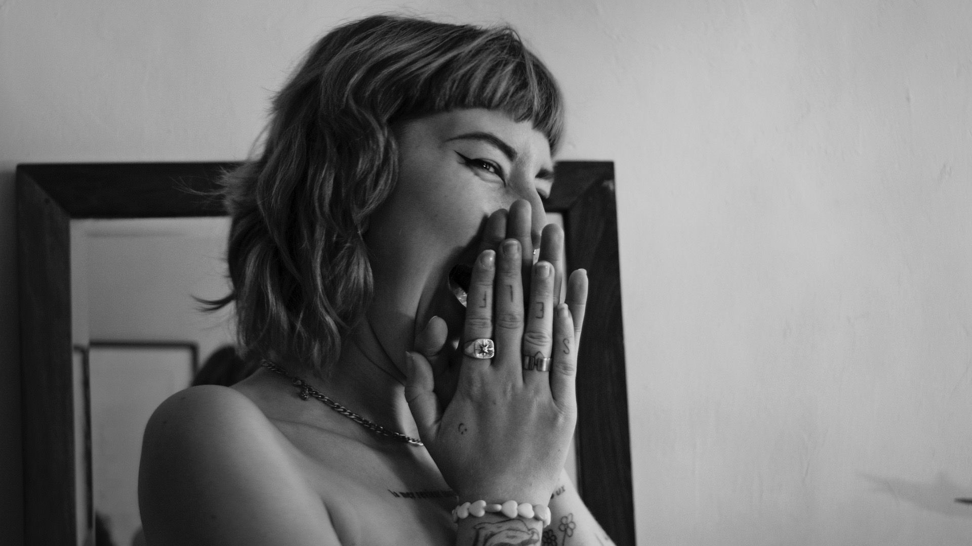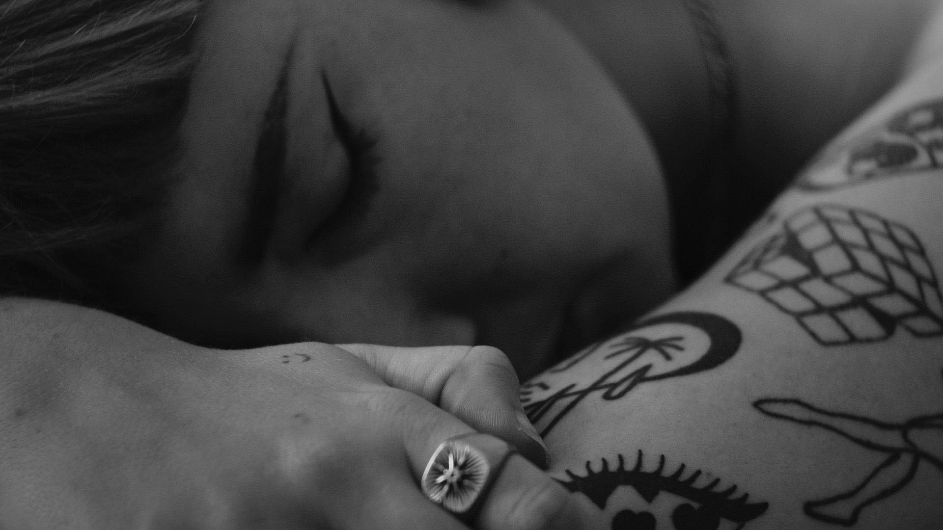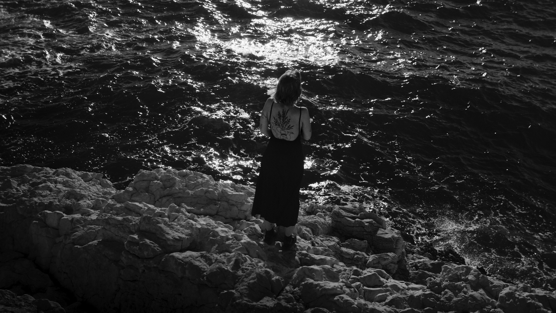 Cinq minutes pour retracer la création d’un tatouage, un dos entier, celui d’Élise. C’est la première fois que Flinart travaille sur un format de cette ampleur, plus proche du tableau que du tatouage. Il nous accueille pendant deux jours dans un grand appartement où plantes, tapis et miroirs se superposent. L’intimité du lieu est suffisante pour laisser pleinement la place au tatoueur et à la tatouée. Une communication silencieuse avec Emma, réalisatrice, permet l’émergence de scènes sincères et douces. Depuis la table à dessin, nous avons la chance de suivre chaque étape de la création du tatouage, mais il était important pour nous de conclure par une séquence d’exposition au monde, une errance dans un extérieur vaste et intemporel. Les calanques de Marseille étaient le décor idéal pour faire ressentir le voyage auquel ce tatouage était destiné. Le noir et blanc s’est imposé comme une évidence pour ce projet. D’abord parce que Flinart a toujours pris plaisir à photographier ses tatouages ainsi, et qu’il était important de s’inscrire dans son langage visuel. Ensuite, la brillance et la densité qui en résulte était la meilleure manière de rendre le trait fin, minutieux et profondément noir du tatouage, Flinart utilise très peu la couleur. Enfin, nous voulions un film où les émotions et les sensibilités soient perceptibles par l’image. Le noir et blanc a été pour nous un moyen d’expression et de sélection, afin d’offrir une représentation du réel équilibrée et de laisser la place restante à l’émotion et au caractère de nos interlocuteur·ice·s.