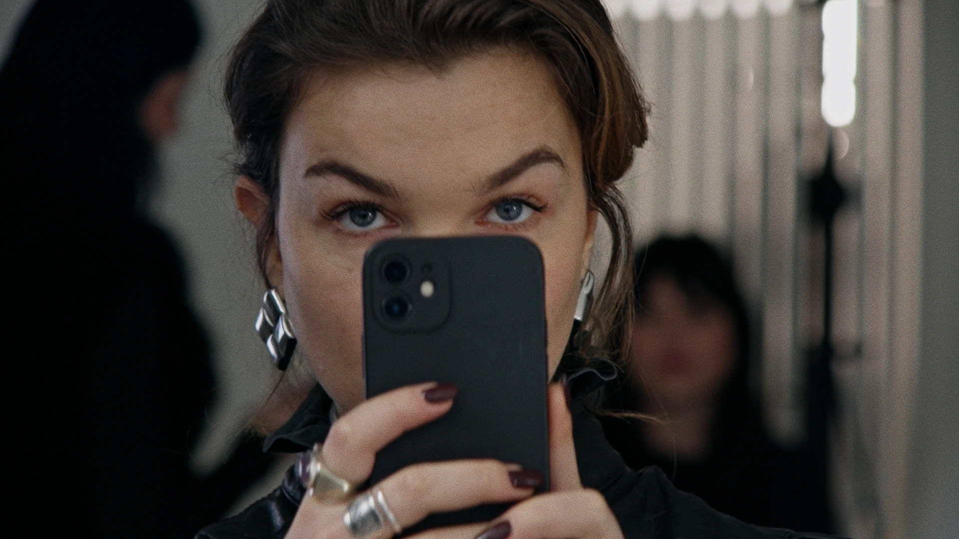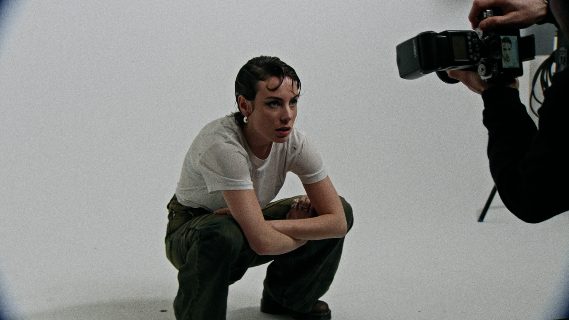 Pour Dissimule d’Adé, réalisé par Lara Chochon, on immerge totalement le spectateur dans un shooting mode oppressant à travers un point de vue rappelant le found-footage : une caméra BTS sensation de caméscope devient le fil narratif du film. Ce regard brut capte peu à peu la montée en pression d’Adé derrière son assurance de façade, ses gestes nerveux, son regard fuyant et une équipe qui se rapproche jusqu’à créer une sensation d’étouffement. La mise en scène évolue progressivement vers une forme absurde de chaos, pour aboutir à un moment de rupture où Adé brise la distance, s’empare de la caméra et reprend le contrôle de son image.