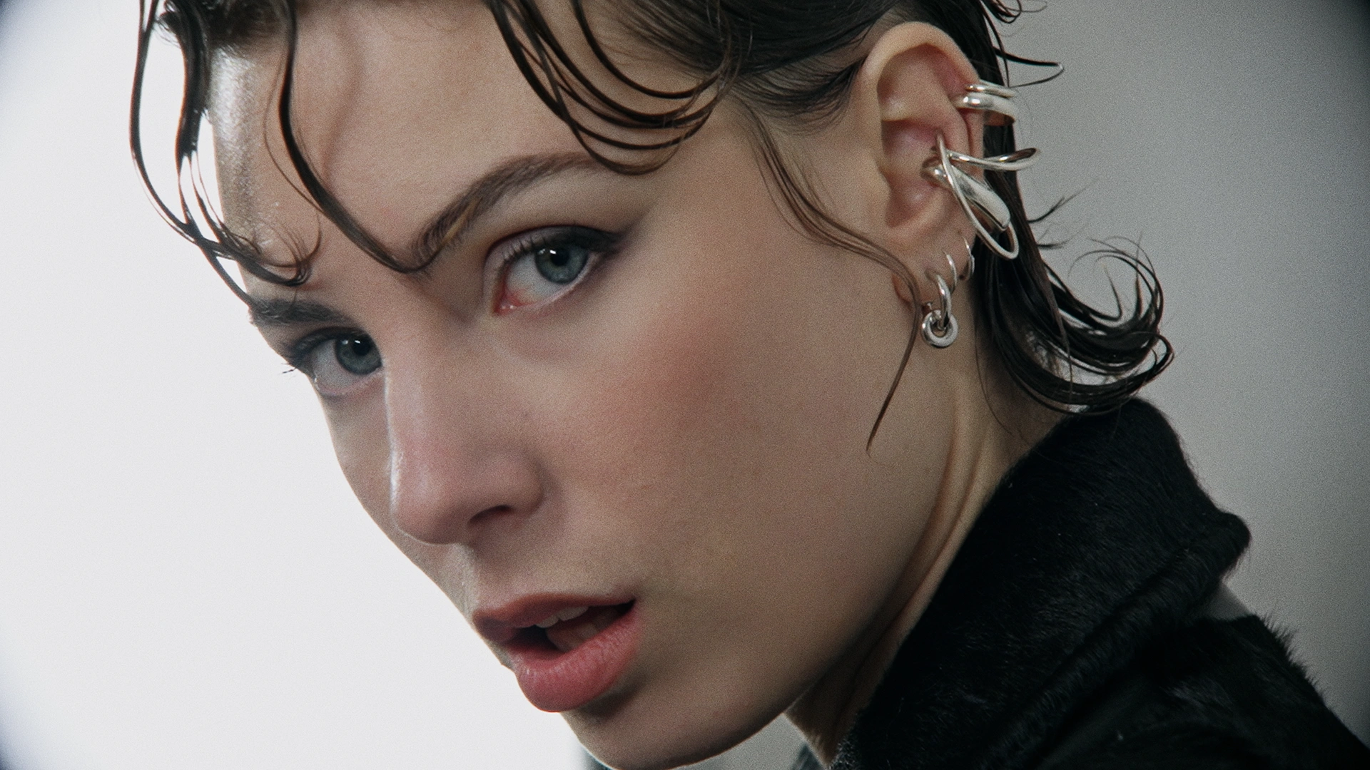 Pour Dissimule d’Adé, réalisé par Lara Chochon, on immerge totalement le spectateur dans un shooting mode oppressant à travers un point de vue rappelant le found-footage : une caméra BTS sensation de caméscope devient le fil narratif du film. Ce regard brut capte peu à peu la montée en pression d’Adé derrière son assurance de façade, ses gestes nerveux, son regard fuyant et une équipe qui se rapproche jusqu’à créer une sensation d’étouffement. La mise en scène évolue progressivement vers une forme absurde de chaos, pour aboutir à un moment de rupture où Adé brise la distance, s’empare de la caméra et reprend le contrôle de son image.