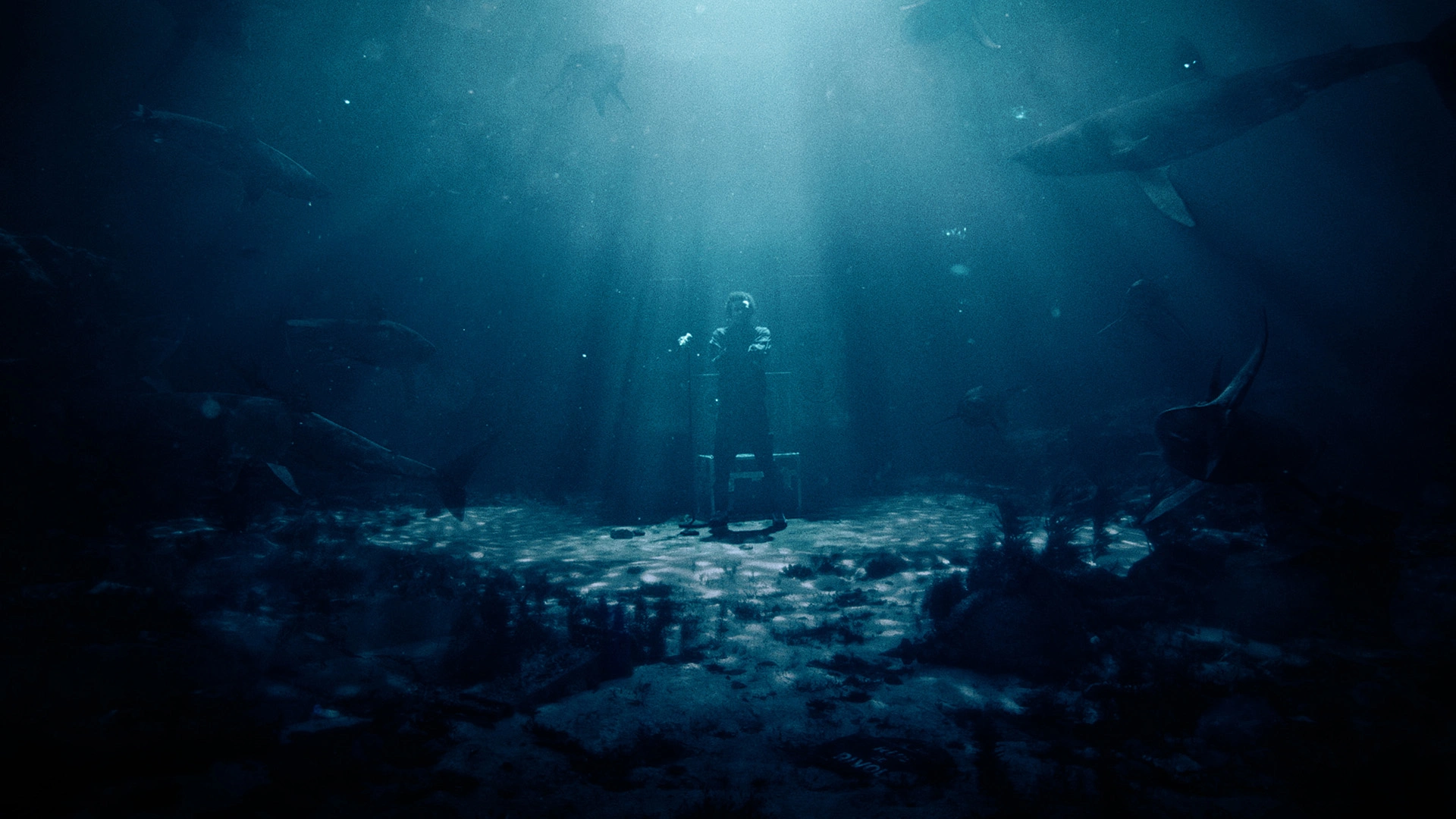 La construction de la lumière est pensée en amont pour faciliter l’intégration des extensions de décors et des requins en 3D. Les sources principales — ARRI M90 et Source Four LED — sculptent un volume lisible et directionnel, proche d’une ambiance de fond marin, afin de conserver une cohérence organique entre prises de vue réelles et VFX, au service d’un univers aquatique à la fois immersif et crédible.
